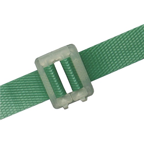 Plastic buckles can be hand applied to ensure 12mm strapping does not come loose in transit. Hand application and tension. For use with 12mm plastic strapping.