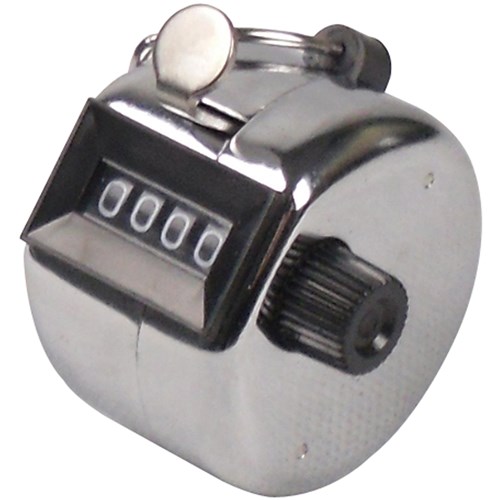Chrome plated metal construction Large capacity - up to 9999 clicks Resets to zero by turning knob Ideal use for surveys, warehouses, etc.