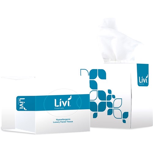 • Livi Essentials Facial Tissues Luxury Hypoallergenic Cube 2 Ply 90 Sheets Box Of 24