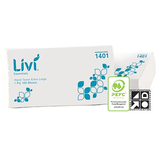 A quality soft and absorbent hand towel for effective hand drying. Extra large size for single sheet usage. 100% sustainable virgin fibre that is independently certified annually by PEFC. HACCP certified for safe use in food preparation areas. To suit Livi hand towel dispenser 5506.