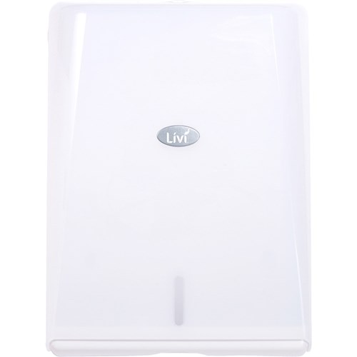 Controlled dispensing - dispenses efficiently one sheet a time. Dual compatibility with ultraslim and multifold paper towel fit. High capacity dispenser with a check-for refill window minimises run-outs. Hygienic full cover design for improved protection. Dual lock functionality. Suits Livi hand towels 1401, 1402, 1415, 7200 and 7201. Dimensions: 285W x 125D x 384mmH.