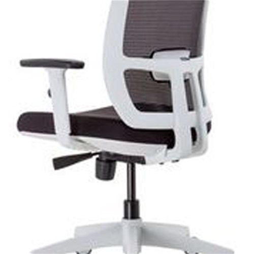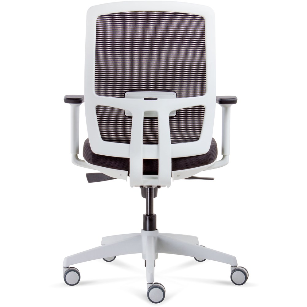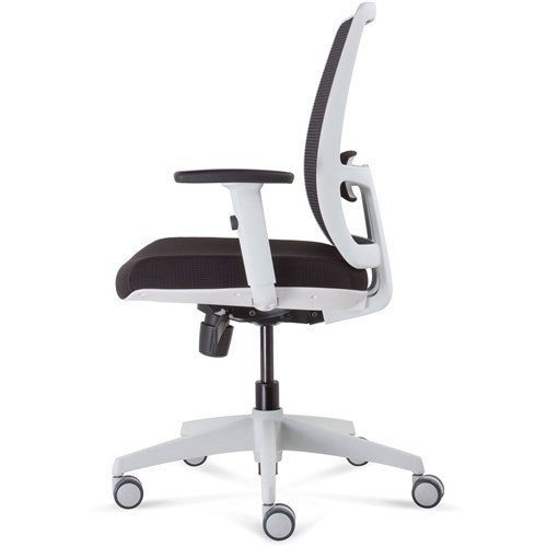 High back mesh executive chair with stylish white frame. Synchro mechanism with adjustable arms. ANSI/BIFMA 5.1-2011 and Greenguard Gold Certified. 135kg weight rating. Synchro mechanism with back rest and seat pan tilt. Gas lift, seat slide and lumbar support. White 5 star base on castors. Black upholstered seat pan and black mesh back. Headrests available as an optional extra. 10 Year Manufacturer's Warranty.