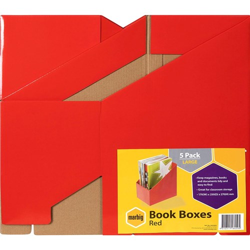 Marbig Book Boxes Large 170W x 250D x 270mmH Red Pack Of 5