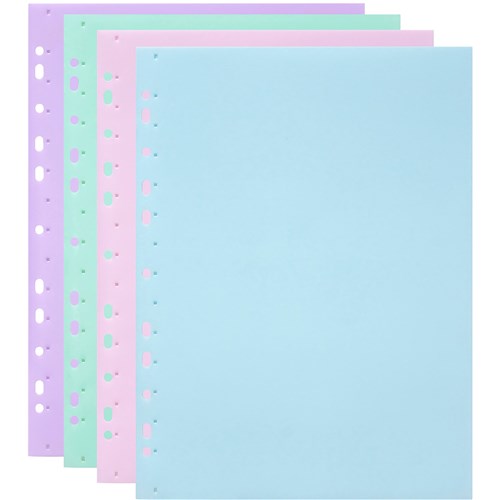 A convenient storage solution and will fit in your binder. Ideal for reports, projects, price lists, product lists and more. Made from polypropylene. Punched to fit 2,3 and 4 ring binders. Assorted colours: 6 x blue, 6 x green, 6 x pink and 6 x purple.