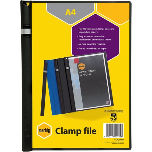 Marbig Spine Clamp File A4 20 Sheet Capacity Black