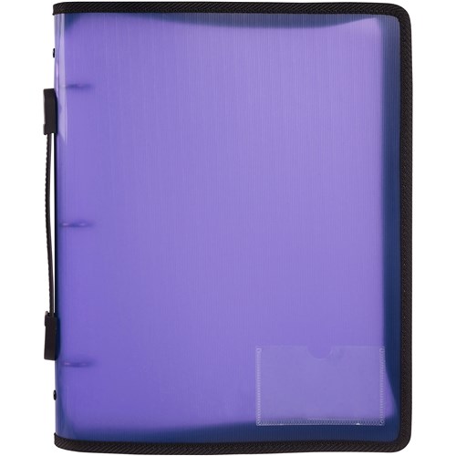 Marbig Zipper Binder With Handle A4 3 O-Ring 25mm Purple