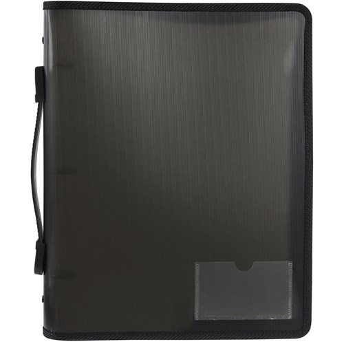 Marbig Zipper Binder With Handle A4 3 O-Ring 25mm Smoke