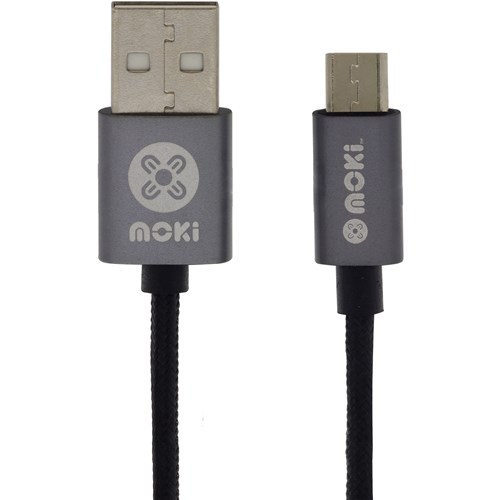 Moki MicroUSB SynCharge Cable 10cm Braided Gun Metal