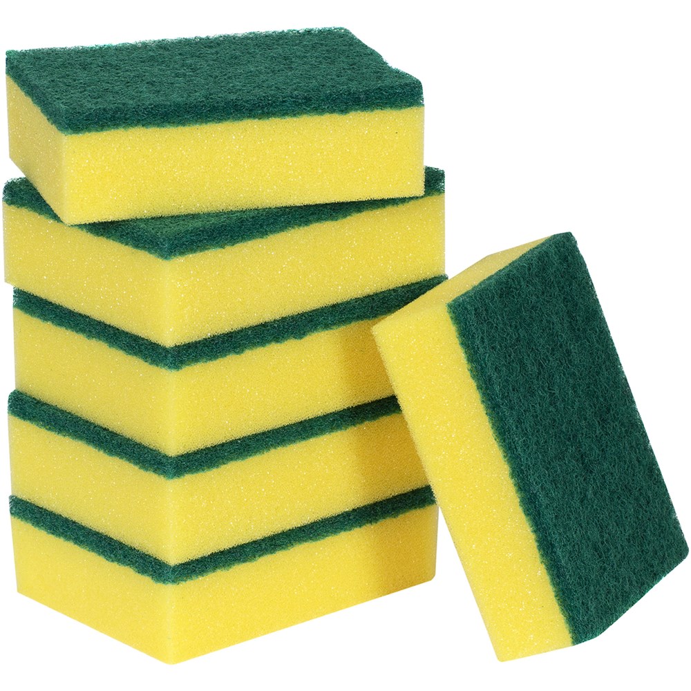 Soft sponge design with abrasive top for increased scrubbing power. Dual sided including non-scratch and absorbent soft sponge. Long lasting.