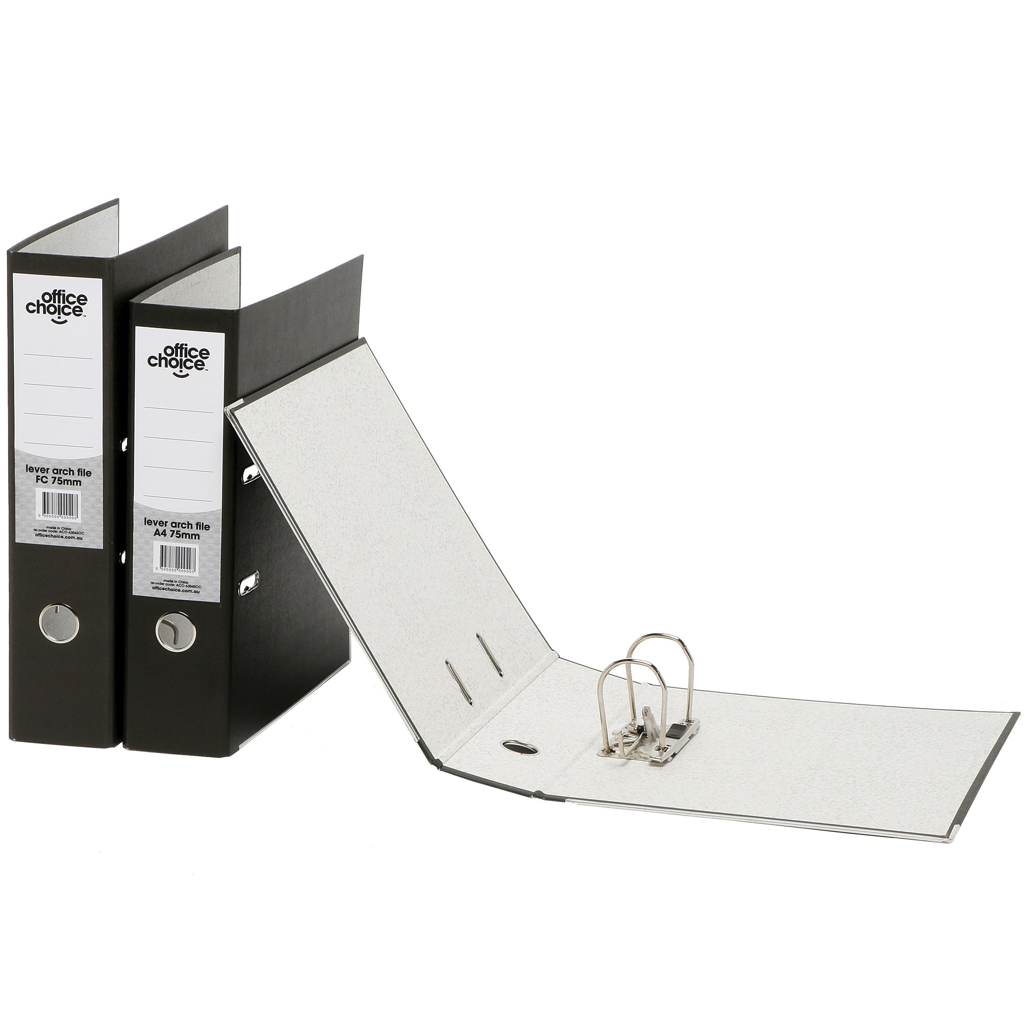 Office Choice Lever Arch Binder A4 75mm Board Paper Spine Black