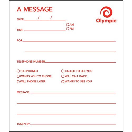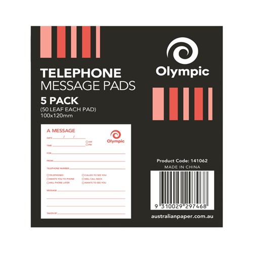 Olympic Telephone Message Pad 100 x 115mm 50 Leaf Black Pack Of 5