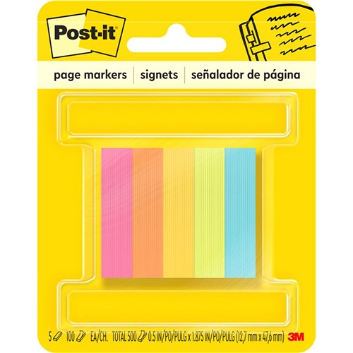 Post-It 670-5AN Page Markers 12x44mm Neon Assorted 100 Sheet Pad Pack of 5