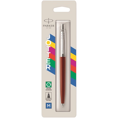 Parker Jotter Originals Ballpoint Pen Red Barrel Stainless Clip Refill Blue