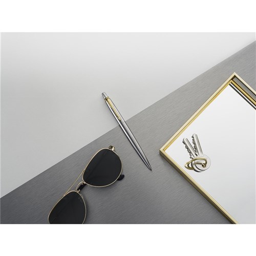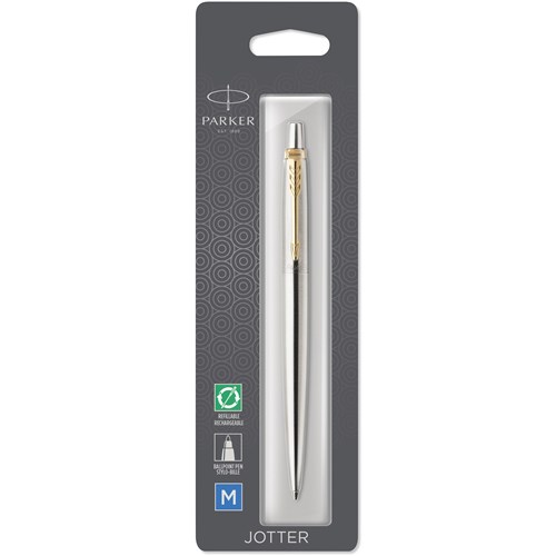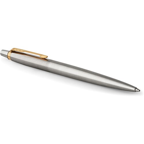 Parker Jotter Ballpoint Pen Gold Trim Stainless Steel Blue Refill