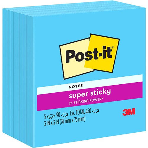 Post-It 654-5SSBE Super Sticky Notes 76x76mm Electric Blue Pack of 5 Pads