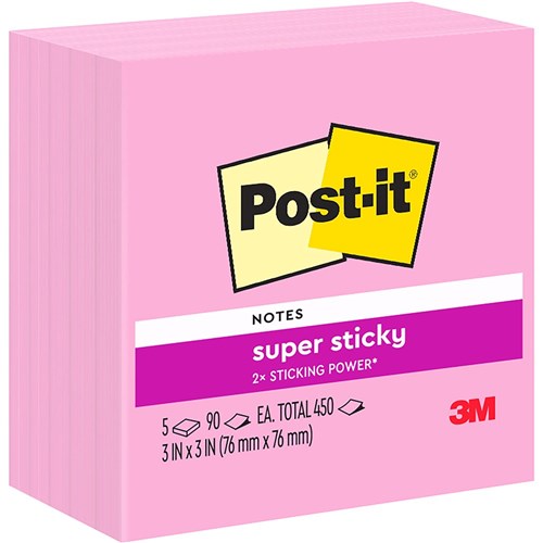 Post-It 654-5SSNP Super Sticky Notes 76x76mm Neon Pink Pack of 5
