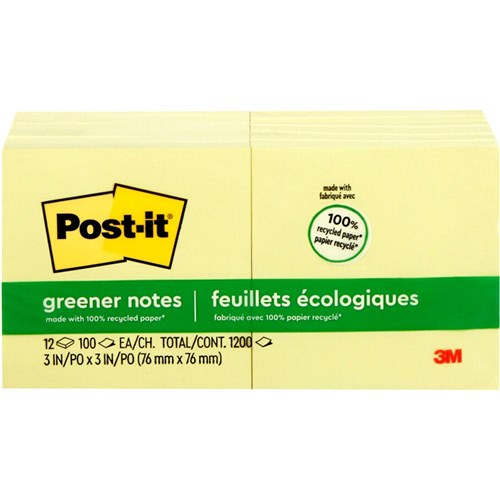 • Post-It 654R-24CP-CY Notes 76x76mm Greener Recycled Cabinet Pack Yellow Pack of 24