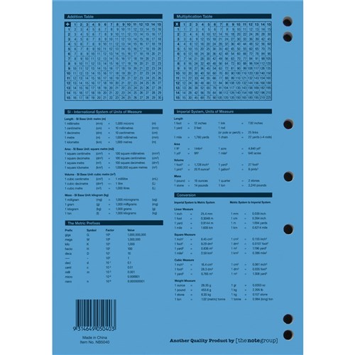 • 4 year calendar, activity page, maths tables & red margin.