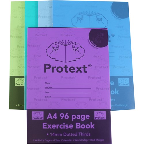 Protext long lasting PP cover. Bright, mixed colours. 4 year calendar, activity page, maths tables & red margin. Quality white bond paper.
