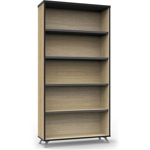 • Rapidline Infinity Bookcase 900W x 315D x 1800mmH 4 Shelf Oak With Black Edge
