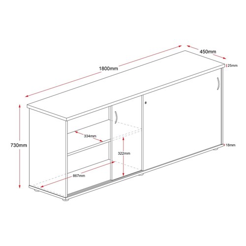 • Rapidline Credenza Sliding Doors 1800W x 450D x 730mmH Cherry And Ironstone