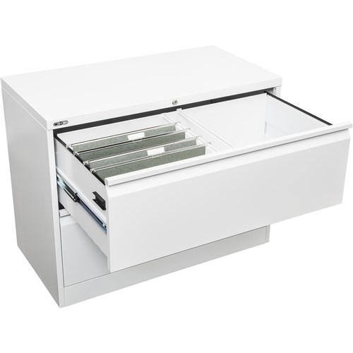 CATEGORY 1 WARNING: This product has a high risk of toppling over. Children have died from furniture tipover. ALWAYS secure this furniture with an anchor device. Go Lateral filing cabinets allow 2 rows of Foolscap files per drawer and fit seamlessly into a workstation layout. Riveted construction for extra strength. Anti tilt locking. Master key locking. Keyed alike locks optional extra. Heavy duty ball bearing runners. Weight limit of 60kgs per drawer. No assembly required. 10 Year Manufacturer's Warranty. Delivery, installation and assembly charges may apply to furniture. Please enquire to confirm.