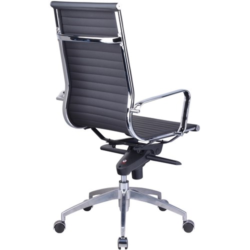 Rapidline PU605H Boardroom Chair Chrome Base And Arms High Back Black Ribbed PU