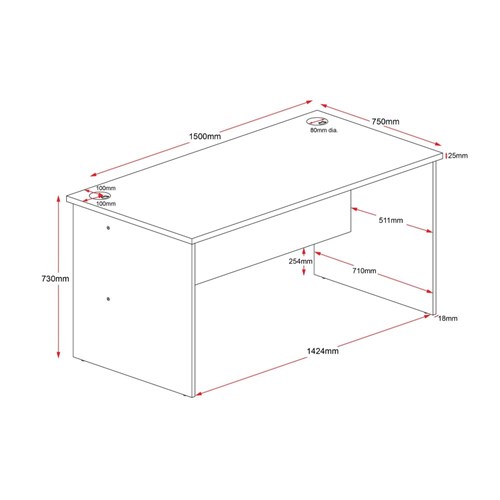 Rapidline Rapid Worker Desk 1500W x 750D x 730mmH Cherry and Ironstone