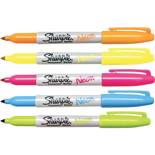 • Sharpie Fine Point Marker Permanent 1.0mm Neon Assorted Pack of 5