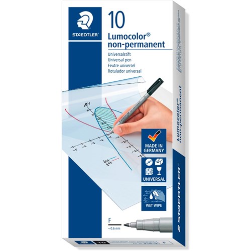 • Universal pen for use on overhead film and almost all surfaces Water soluble and fast drying Can be wiped off using damp cloth