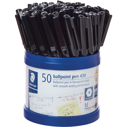 Staedtler 430 Stick Ballpoint Pens Medium 1mm Black Cup of 50