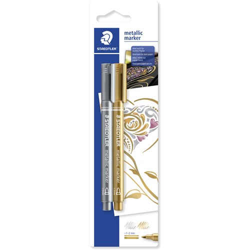 • Staedtler 8323 Metallic Marker Bullet 1-2mm Silver & Gold Pack of 2