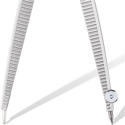 Pecision metal school compass with obtuse angled safety point. Perfect for first circle drawing exercises at school. Maximum circle diameter approximately 300mm.