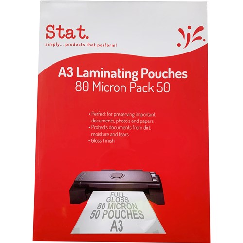 Stat Laminating Pouch A3 80 Micron Gloss Pack of 50