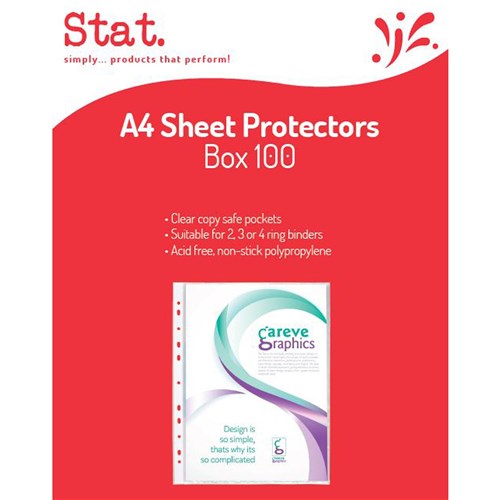 The Stat A4 Sheet Protectors Feature A Reinforced Binding Edge That Has An 11 Hole Punch, Making Them Suitable For All 2, 3, 4 Ring Binders And All Lever Arch Files These Lightweight, 35 Micron, Non-Stick Polypropylene Top Opening Sleeves Are Perfect For Organising And Protecting Your Loose Documents And Papers They Are Acid Free So You Do Not Have To Worry About Them Reacting With Your Documents Photocopy Safe, So They Will Not Lift