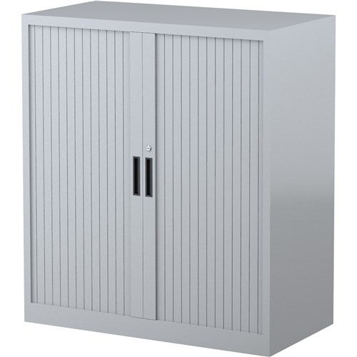 Steelco Tambour Door Cupboard Includes 2 Shelves 900W x 463D x 1015mmH Silver Grey