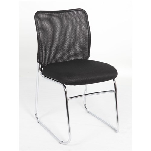 Studio Visitor Chair Chrome Sled Base Mesh Back Fabric Seat Black