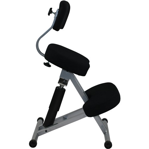 Maintain the natural curve of the spine in a kneeling seat rather than a traditional 90 degree sitting profile. Roller base. Single lever mechanism and finished in silver powder coat with black feet and commercial grade black fabric. Chair Capacity: 110kg. Composition: Fabric. Seat Width: 400mm. Seat Depth: 300mm. Back Height: 300mmH. Seat Height: 500-570mH. Indicative Seating Time: 4-6 hours. 10 Year Manufacturer's Warranty. Delivery, installation and assembly charges may apply to furniture. Please enquire to confirm.