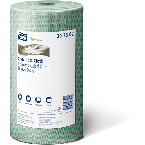 • Tork Heavy Duty Cleaning Cloth Roll 45m 90 Sheets Green Carton Of 4
