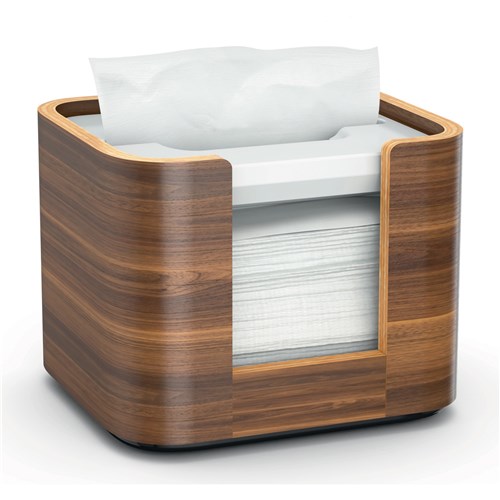 A timeless design in walnut wood. The compact footprint, minimises the use of table space. This sleek dispenser delivers napkins one-at-a-time, improving hygiene and reducing consumption up to 25% when compared to traditional dispenser napkins. Ideal solution for contemporary limited service restaurants that offer napkins on the table. Dimensions: 146W x 136D x 116mmH. Use with product 2183638.