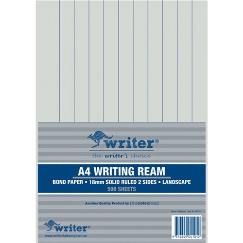 Writer A4 Exam Paper 18mm Solid Ruled Landscape Ream of 500